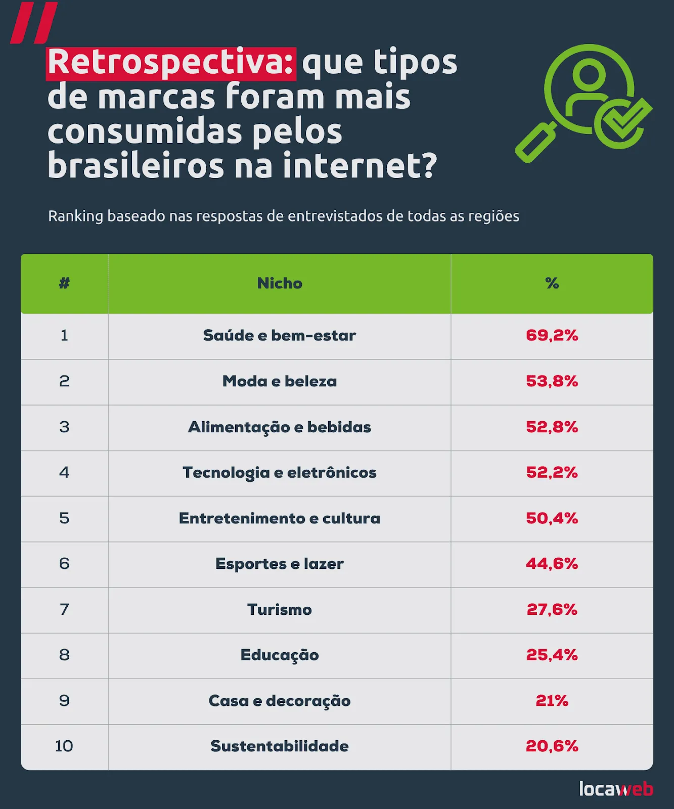 Os setores que mais chamaram a atenção do público foram saúde e bem-estar (69,2%), impulsionados por buscas por suplementos e produtos naturais. Moda e beleza (53,8%), alimentação e bebidas (52,8%) e tecnologia e eletrônicos (52,2%) completam a lista.